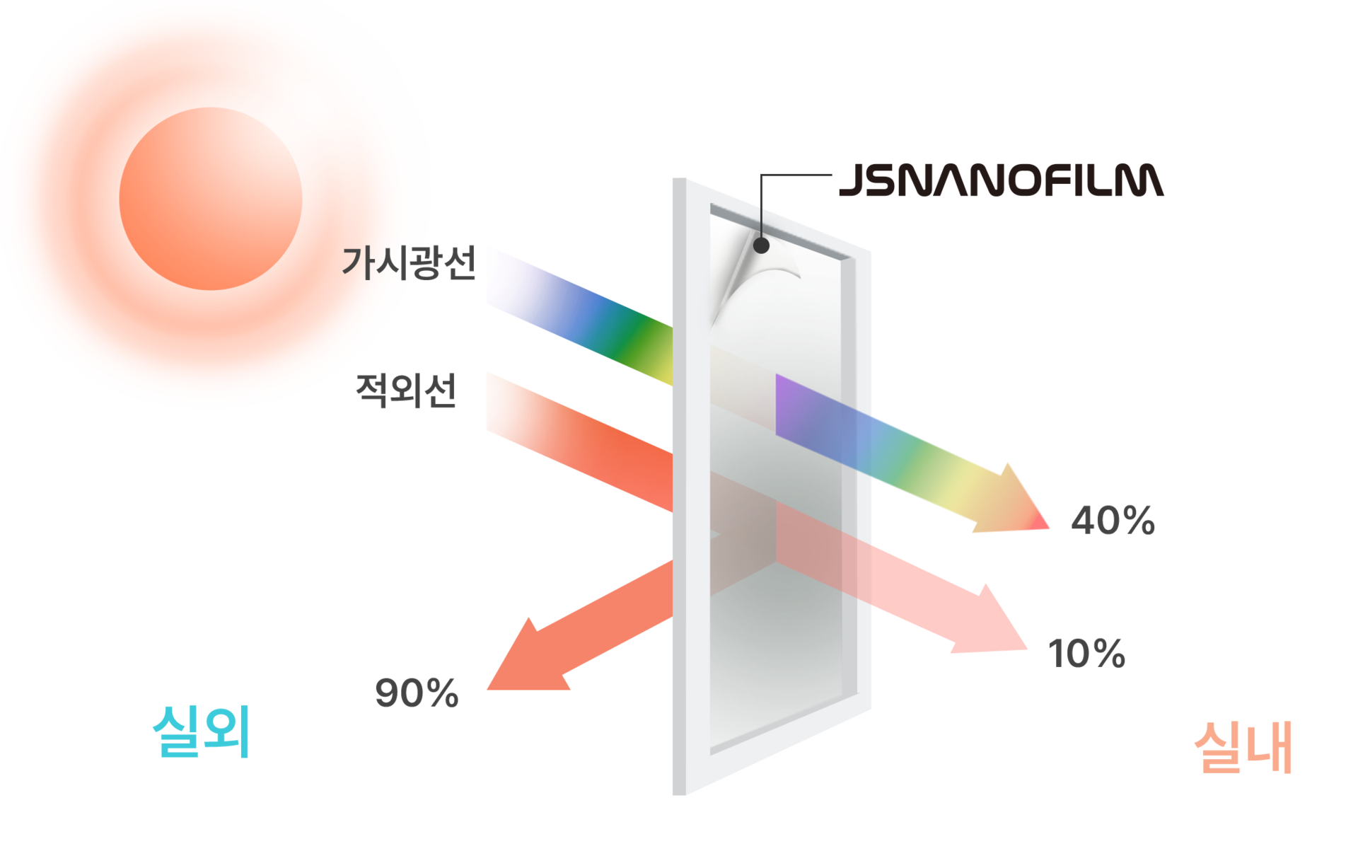 실내 온도 상승 및 실내 온도 불균형, 냉난방기 효율 저하 등의 문제를 해결하여 창호 유리의 에너지 효율을 향상시키기 위해서 개발된 건축용/자동차용 필름입니다.