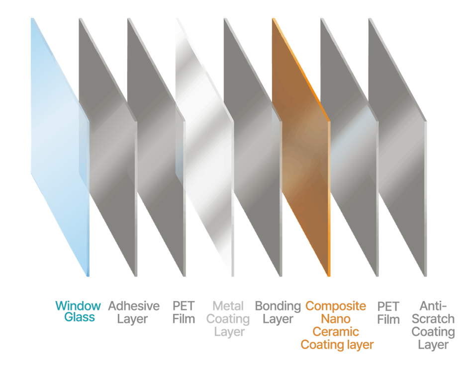 국내 최초로 개발한 세라믹 열차단 코팅액을 제품에 직접 적용하여 지난 15년간 전세계 30여개국에 수출함으로서 국제적으로 안정성 및 품질을 공인받은 필름입니다.