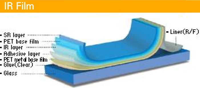 초투명 필름에 특수 제작된 IR Solution을 코팅하고, 금속박막코팅층을 Lamination한 필름입니다. 열 및 자외선 차단이 뛰어난 최고가 제품입니다. CROWN Series와 Supreme Series가 해당됩니다.