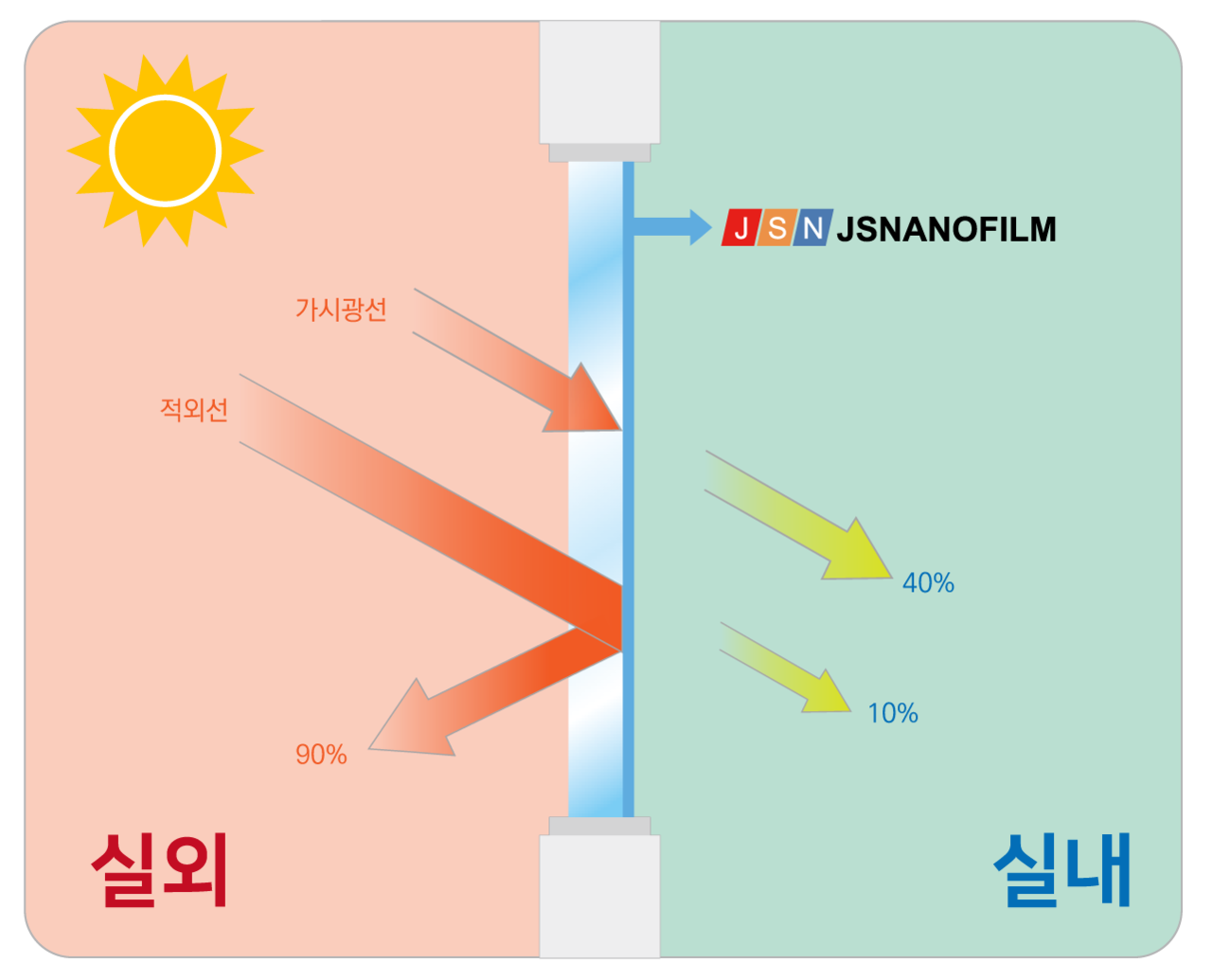 1. 내부로 투과되는 열량을 최소화하여 냉방기 효율 증대 및 에너지 절감이 가능