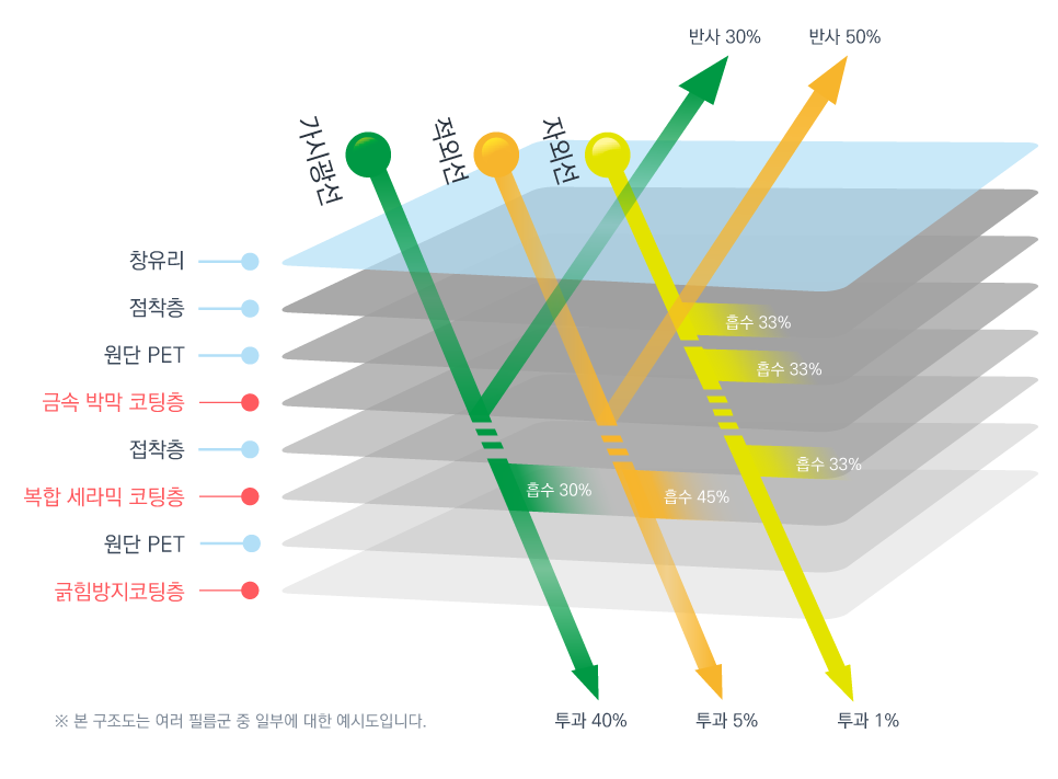 실내온도 상승 및 실내온도 불균형, 냉난방기 효율 저하 등의 문제를 해결하여 창호 유리의 에너지 효율을 향상시키기 위해서 개발된 건축용/자동차용 필름입니다.