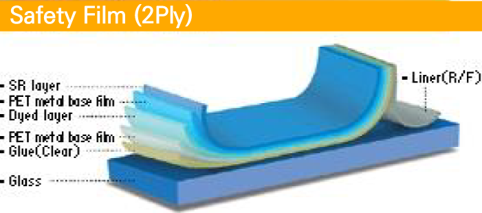 방범, 안전용 필름으로 투명하고 자외선 차단 기능을 보유합니다. 4MIL 이상의 두께를 가져야 하며 18MIL도 가능합니다. 강화유리에 부착하면 방탄유리까지 가능합니다. Safety & Security Series가 해당됩니다.